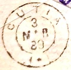 The oldest postmark to date is CSP-0395a, which also exists in brown and was already presented by P. Ayres in the Catálogo de Carimbos Brasil-Império (S. Paulo, 1937, 1942) with no. 1287: