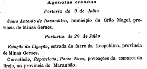 The local post office was opened in July 1889, as can be seen from the postal bulletin (Boletim Postal) of the following month: