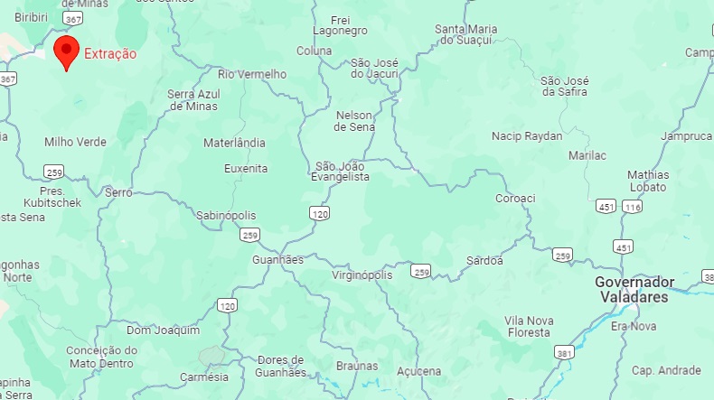 Die Ortschaft Curralinho in der Provinz Minas Gerais war eine Siedlung der Vila de Diamantina am Nordufer des Ribeirão do Inferno (Höllenbach), 400 km nördlich der Provinzhauptstadt Ouro Preto. Sie wurde im September 1862 zur Freguesia erhoben und ist seit September 1923 der Distrikt Extração (Entnahme bzw Gewinnung).