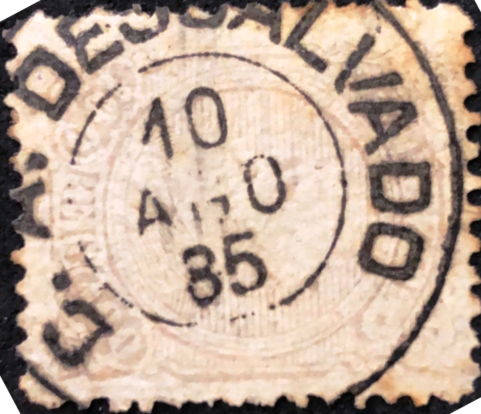 Until about 1878 the postmarks bore the place name BELEM DO DESCALVADO (see BSP-0145). Then came DSP-0435a (fig. R. Koester, in Carimbologia IV):
