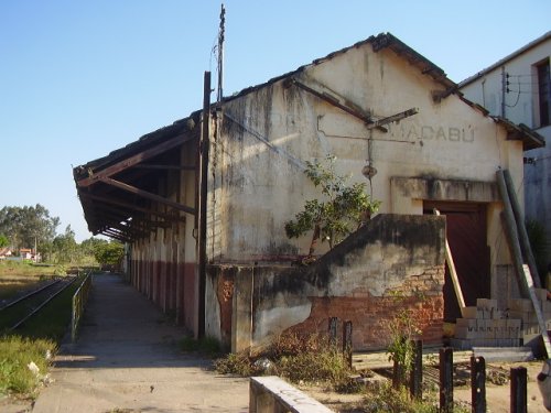 Dores de Macabu station was opened in 1875 by the railway company E.F. Macaé e Campos (Coastline) and was located near the north bank of the Macabu in the Município de Campos, 320 km north-east of the capital Rio de Janeiro. The line went to E.F. Leopoldina in 1887 and belonged to Rede Ferroviária Federal S.A. from 1975 until it was closed in 1996 (estacoesferroviarias.com.br). The tracks are still there today, but the station building was derelict in 2008.