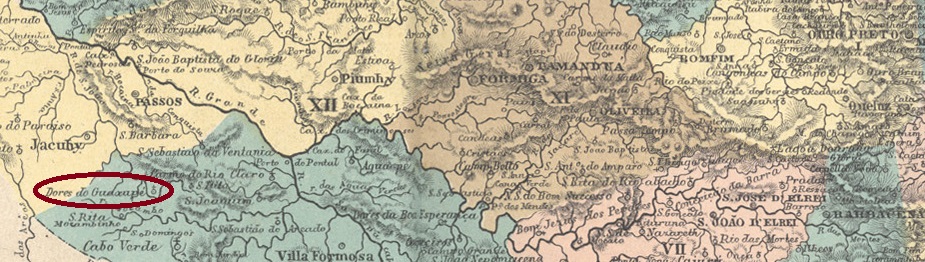 Paula Sobrinho (História Postal de Minas Gerais, Belo Horizonte, 1997) und R. Koester (Carimbologia XVI) sind sich einig, dass es dort seit November 1878 ein Postamt gab. Der bisher einzige kaiserliche Poststempel ist DMG-1065a (Abb. Claudio Coelho):