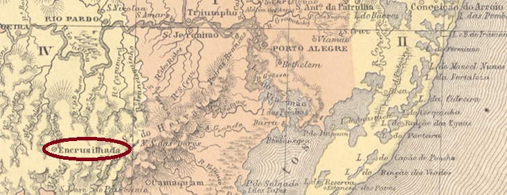 R. Koester schreibt in Carimbologia XVII, dass es dort seit 1853 ein Postamt gab, was durch das Verzeichnis der kaiserlichen Postämter (Tabella das Agencias do Correio do Imperio, Rio de Janeiro, 1885) bestätigt wird. Es dürfte sich aber um eine Wiedereröffnung gehandelt haben, denn bereits im Annuario Politico, Historico e Estatistico do Brazil von 1846 ist zu lesen, dass das Postamt in Encruzilhada – vermutlich von den Aufständischen Farroupilhas errichtet – beibehalten werden sollte: