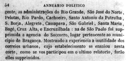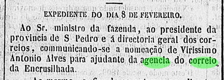 Außerdem wurde im Februar 1850 in der Presse von Rio ein Postangestellter für Encruzilhada vorgestellt: