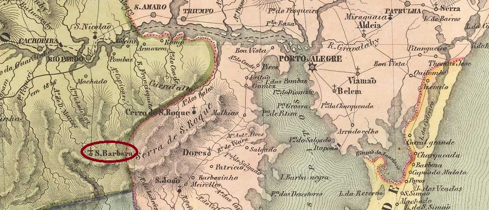 The Freguesia de Sta. Barbara de Encruzilhada, which had existed since November 1837, belonged to the Vila de Rio Pardo and was located 170 kilometres southwest of the provincial capital Porto Alegre. In July 1849 it was elevated to a Vila and has been Município de Encruzilhada do Sul since December 1944.