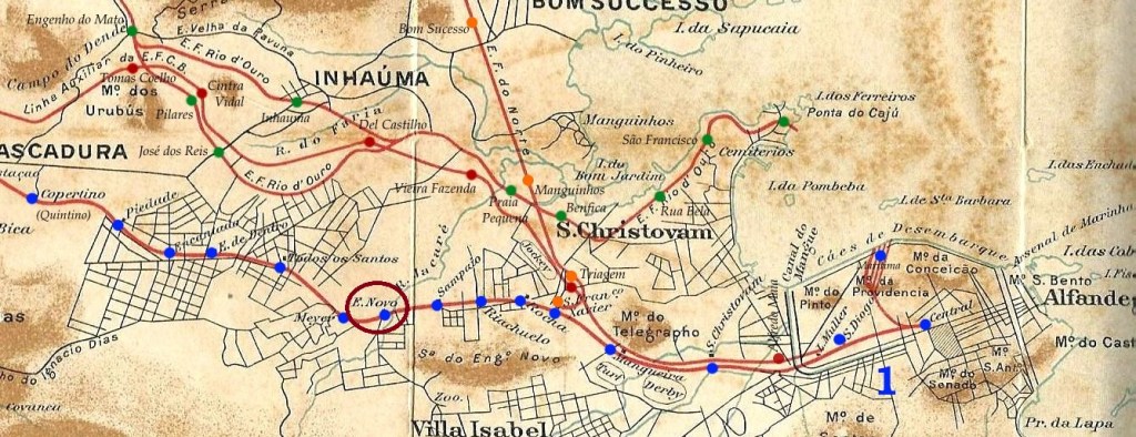 Der Bahnhof Engenho Novo (Neue Zuckerfabrik) wurde 1858 von der Eisenbahngesellschaft E.F. D. Pedro II (Hauptlinie) eröffnet und liegt 10 km westlich des Stadtzentrums von Rio de Janeiro. Die Strecke ging 1889 an die E.F. Central do Brasil, 1975 an die Rede Ferroviária Federal S.A. und wird seit 1997 vom Konsortium Supervia (estacoesferroviarias.com.br) betrieben.