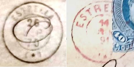 As there was previously also a french-type postmark from Estrella in the province of Rio de Janeiro, here is a comparison of both cancellations (Estrella/RS on the right):
