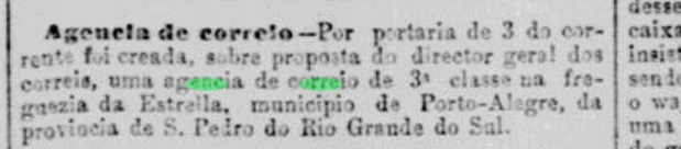 Wie die Presse von Rio berichtete, gab es dort seit Februar 1882 ein Postamt: