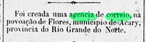 R. Koester schreibt in Carimbologia XIX, dass es dort seit November 1887 ein Postamt gab. Dies wird von der Presse in Rio bestätigt: