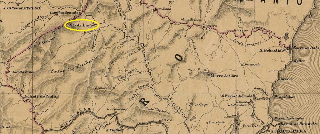 Since November 1861, the Freguesia de N. Sra. da Piedade da Lage existed in the Vila de Sto. Antonio de Pádua on the south bank of the Muriaé, 320 kilometres north-east of the capital Rio de Janeiro. In December 1887, the Freguesia was transferred to the Vila de Itaperuna, and since March 1962 there has been the Município de Laje do Muriaé.