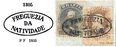 Der erste Stempel ist FRJ-1105a. Die bekannte Abbildung aus P. Ayres‘ Catálogo de Carimbos Brasil-Império (S. Paulo, 1937, 1942) trägt die Nr. 1305 und konnte durch ein Beispiel aus der Sammlung Everaldo N. dos Santos korrigiert werden: