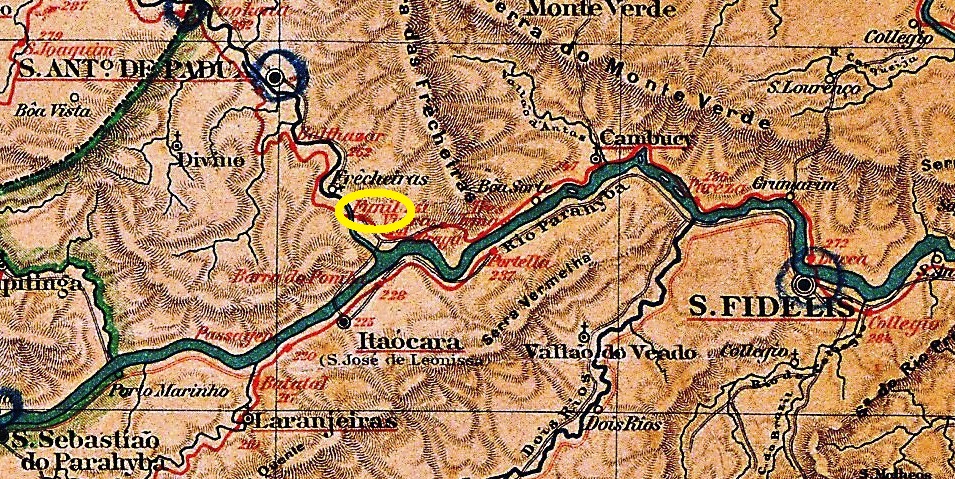 Funil station (= funnel, not to be confused with Cachoeira do Funil, CRJ-0240) was opened in December 1881 by the railway company E.F. Sto. Antonio de Padua (Campos-Miracema Line) on the north bank of the Pomba River in the Município de S. Fidelis, 250 kilometres north-east of the capital Rio de Janeiro. The line then changed hands three times: in 1884 to E.F. Macaé e Campos, in 1887 to E.F. Leopoldina and in 1975 to Rede Ferroviária Federal S.A., where it remained until its closure in 1996 (estacoesferroviarias.com.br). Today, the tracks are still there, but from the former station building only the remains of a water reservoir can be seen: