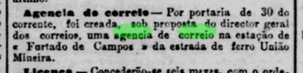 As the Rio press reported, there had been a post office at the railway station since May 1883: