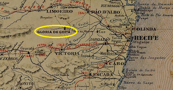 The Freguesia de N. Sra. da Glória de Goytá was founded in May 1837 and belonged to the Vila de Pau d’Alho on the south bank of the Goitá, 60 kilometres west of the provincial capital Recife. It became a vila in July 1877 and a town in June 1884, now written Glória do Goitá.