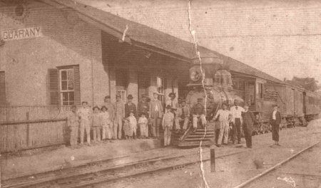 Im Juni 1883 wurde in Guarany ein Bahnhof der Eisenbahngesellschaft União Mineira (Caratinga-Linie) eröffnet. Die Bahnlinie ging 1884 an die E.F. Leopoldina über und gehörte von 1975 bis 1994 der Rede Ferroviária Federal S.A. (estacoesferroviarias.com.br). Heute sind die Gleise entfernt, das Bahnhofsgebäude dient als Busbahnhof.