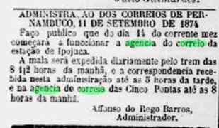 As reported in the Rio press, the decision to set up a post office at the railway station was already made in December 1864: