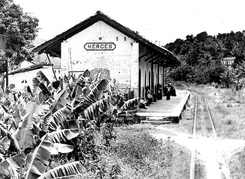 Ipojuca station was opened in November 1860 by the railway company E.F. Recife ao S. Francisco. The railway line was transferred to Great Western in 1901 and to Rede Ferroviária do Nordeste in 1950. From 1975 to 1996 it belonged to Rede Ferroviária Federal S.A. (estacoesferroviarias.com.br). Sometime around 1920, the station was renamed Mercês after a sugar factory. Today the tracks are still there, but the station building has long since been demolished.