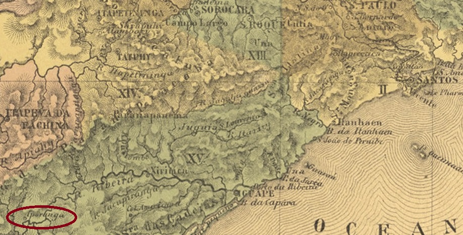The name Yporanga (also spelled Iporanga) comes from the Tupi-Guarani and means Beautiful Waters. The old freguesia of Yporanga was established as early as December 1830 and was located at the mouth of the river of the same name in the Ribeira do Iguape in the Município of Apiahy, 310 km southwest of the provincial capital of São Paulo. In March 1843, the village went to the Vila of Xiririca and became a Vila itself in April 1873. It even became a town in December 1906, but was downgraded as a district of Apiahy between 1934 and 1936.