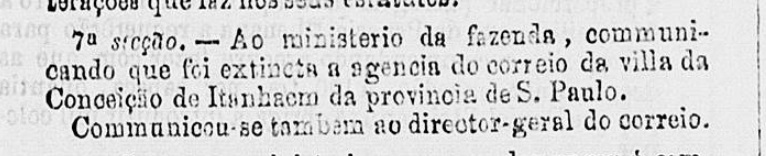 Three periods of operation for the local post office in the Empire have been established, although it is still unknown when the first one began. It ended in May 1847, according to the report of the Ministry of the Empire:
