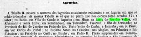 Nova Monteiro schreibt in Administrações e Agencias Postaes do Brasil Imperio (Brasil Filatelico/RJ, 1934-5; Reprint SPP 1994-1999), dass es dort seit Oktober 1858 ein Postamt gab. Dies wird durch den folgenden Bericht der Generaldirektion der Post bestätigt: