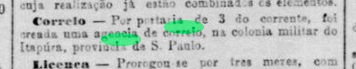 Die Einrichtung eines Postamts wurde im August 1883 beschlossen, wie die Presse aus Rio meldete:
