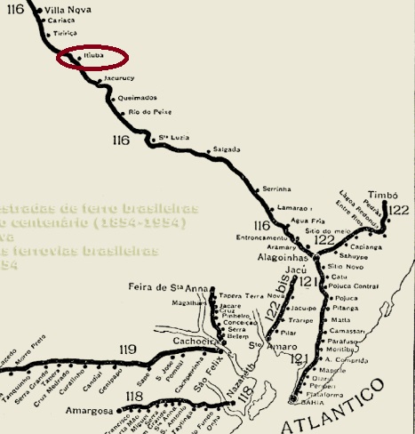 Da bereits im April d.J. ein Bahnhof der E.F. de Alagoinhas a Joazeiro am Ort eröffnet wurde, handelt es sich hier vermutlich um ein Bahnhofspostamt. Kaiserliche Poststempel aus Itiuba wurden bisher nicht gefunden.