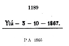Ebenfalls YSP-1615f, der auch in Blau zwischen 1866 und 1881 vorkommt, mit P. Ayres Nr. 1189. Allerdings kann der Punkt am Ende manchmal fehlen:
