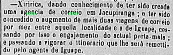 However, postal traffic to and from Jacupiranga had already existed two years earlier: