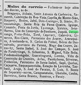 Postverkehr von und nach Jacupiranga gab es allerdings schon zwei Jahre früher: