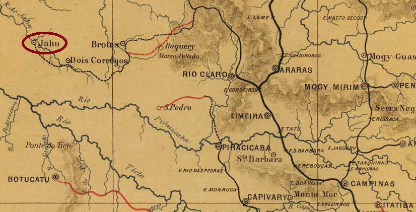 In March 1859, the Freguesia de N. Sra. do Patrocínio do Jahu was founded on the south bank of the Jaú in the Vila de Brotas, 300 kilometres northwest of the provincial capital of São Paulo. It was declared a vila in April 1866 and a town in February 1889. The indigenous name refers to a large catfish from the Pimelodidae family: