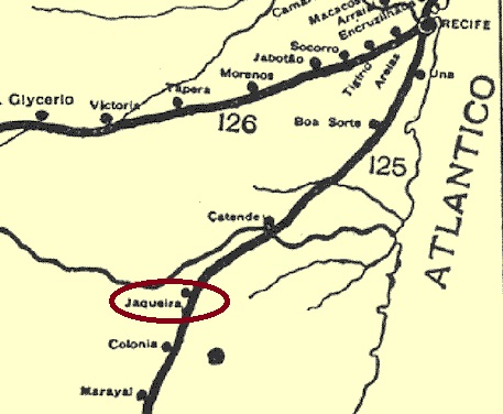 Der Bahnhof Jaqueira wurde im Juli 1883 von der Eisenbahngesellschaft E.F. Recife ao S. Francisco (Südlinie) eröffnet und lag am Ufer des Jaqueira im Município de Palmares, 150 km südwestlich der Provinzhauptstadt Recife. Die Strecke wechselte noch dreimal den Besitzer: 1901 ging sie an die Great Western, 1950 an die Rede Ferroviária do Nordeste und von 1975 bis zu ihrer Stilllegung 1996 gehörte sie der Rede Ferroviária Federal S.A. (estacoesferroviarias.com.br). Die Gleise sind noch vorhanden, das restaurierte Bahnhofsgebäude dient als Kulturzentrum der Gemeinde.