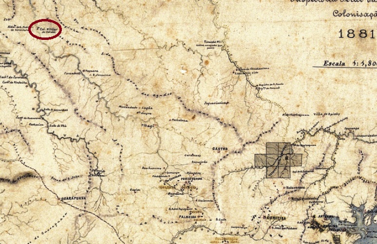 Jatahy was also the name of a military colony founded in January 1851, which belonged to the Vila de Tibagy and was located on the east bank of the Tibagi, 400 kilometres northwest of the provincial capital Curitiba. In April 1872, it was elevated to the Freguesia de N. Sra. da Conceição do Jatahy and incorporated into the Município de Tomazina as a district around 1910. In February 1920 it was elevated to the Município de S. Jerônimo and in March 1929 it became a town. The original place name Jatahy returned in May 1932, but in October 1938 the place was downgraded to a distrito in the Município de S. Jerônimo, before being renamed again in December 1943, this time to Jataizinho, now in the Município de Assaí. It was not until October 1947 that Jataizinho became a município again.
