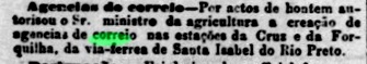 Wie aus der Presse in Rio hervorgeht, gab es ab Januar 1887 ein Postamt am Bahnhof:
