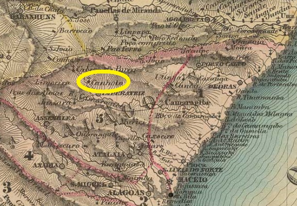 Two different years were found for the creation of the local post office. Aldo Cardoso (Contribuição para a História dos Correios de Alagoas, Maceió, 1969) writes the quite early year 1835, which may be a misprint. And the Imperial Mail Register (Tabella das Agencias do Correio do Imperio) from 1885 lists the agency from 1872 on, which would be rather plausible. The oldest postmark to date is LAL-0320b (fig. R. Koester, in Carimbologia XXVI):