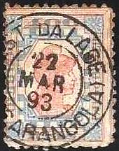 Der bisher älteste Poststempel ist hier LRJ-1075a, hier in einer Abbildung von Cícero Antonio Almeida (Carimbos Postais – século XIX, Rio de Janeiro, 1989) unter Nr. 764: