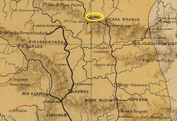 Dieser Bahnhof Lage wurde im November 1881 von der Eisenbahngesellschaft E.F. Mogyana (Hauptstrecke) eröffnet und lag im Município de Casa Branca, 240 km nördlich der Provinzhauptstadt São Paulo. So blieb es bis zur Stilllegung der Strecke im Jahr 1937. Seit März 1885 befand er sich im Município de Sta. Cruz das Palmeiras. Heute sind die Gleise verschwunden, das Bahnhofsgebäude diente 2016 noch als Wohnhaus (estacoesferroviarias.com.br).