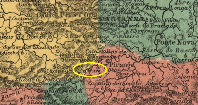 Paula Sobrinho (História Postal de Minas Gerais, Belo Horizonte, 1997) und R. Koester (Carimbologia XXVI) sind sich einig, dass es dort seit Mai 1879 ein Postamt gab. Der bisher älteste Poststempel ist noch handschriftlich (Abb. Koester, op. cit.):