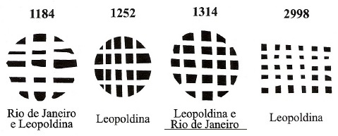 Dann haben James Dingler und Klerman W. Lopes sieben stumme Poststempel aus Leopoldina in Mute Cancellations of the Brazil Empire / Carimbos Mudos do Brasil Império (Brazil Philatelic Association, Rio de Janeiro, 2000) aufgeführt: