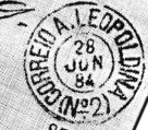 Von dem ältesten Stempel LMG-1495a haben wir leider nur eine Beschreibung von R. Koester in Carimbologia XXVI. Ein grünblauer Doppelkreis auf einer D. Pedro-Ausgabe von 1866 mit der Inschrift Cidade LEOPOLDINA zwischen den Kreisen und MINAS in der Mitte.