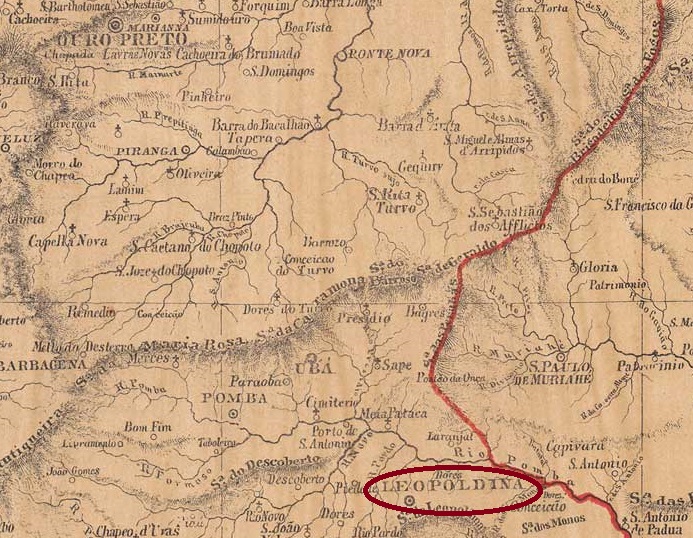 The village was originally called Distrito de S. Sebastião do Feijão Cru (Raw Beans), belonged to Vila de Mar d’Hespanha and was located 250 km south-east of the provincial capital Ouro Preto. In April 1854, it became both Vila and Freguesia de Leopoldina. Leopoldina has been a town since October 1861.