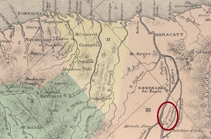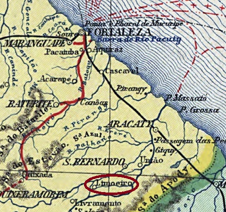 The Freguesia de N. Sra. da Conceição do Limoeiro had existed since December 1864. It belonged to the Vila de S. Bernardo das Russas and was located on a large island in the Jaguaribe, 200 kilometres south of the provincial capital Fortaleza. Four years later it became a Vila and in August 1897 a town. Since December 1943, the município has been known as Limoeiro do Norte.