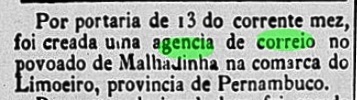 Wie aus der Rio-Presse hervorgeht, gab es dort seit August 1884 ein Postamt: