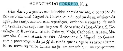 However, a post office in Marapanim was already mentioned in February of the previous year in the provincial president’s report: