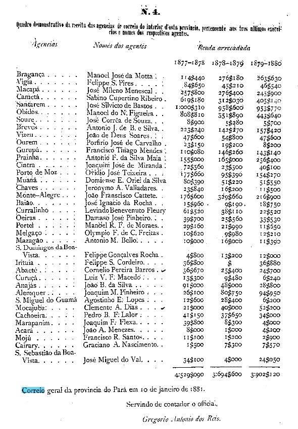 The Mazagão post office was certainly in operation in 1877, as can be seen from the provincial president’s report of February 1881.