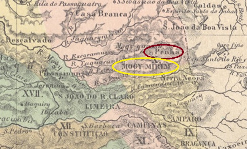 Of the three localities in the imperial province of São Paulo that bore the name Mogy, this was the largest and had the most postmarks. The Freguesia de S. José de Mogy Mirim, which had been in existence since November 1751, belonged to the Vila de Jundiaí and was located 150 kilometres north of the capital São Paulo. In October 1769, it was elevated to the status of a vila and in April 1849 to that of a city.