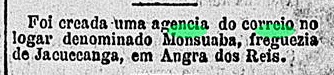 Conforme divulgado pela imprensa do Rio, havia uma agência dos correios no local desde janeiro de 1881.