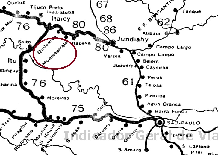 Der Bahnhof Mont Serrat wurde im Juni 1889 von der E. F. Ytuana (Jundiaí-Zweig) eröffnet und lag am Nordufer des Jundiaí, 80 Kilometer nördlich der Provinzhauptstadt São Paulo. Die Bahnlinie ging 1892 an die Cia. União Sorocabana e Ytuana, 1907 an die Sorocabana Railway, 1919 an die E.F. Sorocabana und gehörte von 1971 bis zur Stilllegung im Jahr 1973 dem FEPASA-Konsortium.