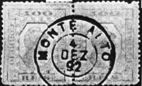 R. Koester writes in Carimbologia XXVII that there had been a post office there since March 1864. However, this was a reopening, as the Monte Alto post office had already been created in May 1852, as announced by the press in Rio de Janeiro.