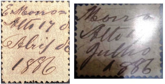 According to the postal report (Relatorio Postal) for 1886, there had been a post office at the station since August 1885. The stamps were initially cancelled by hand, as shown in the following images from the collections of Carlos A. Balata and Fuad Ferreira Fo.
