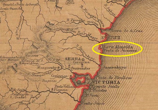 Wie Nova Monteiro in Administrações e Agencias Postaes do Brasil Imperio (Brasil Filatelico/RJ, 1934–1935; Nachdruck SPP 1994–1999) schreibt, gab es dort seit Oktober 1831 ein Postamt. Der bisher einzige kaiserliche Poststempel aus Nova Almeida ist NES-0115b (Abb. agenciaspostais.com.br):